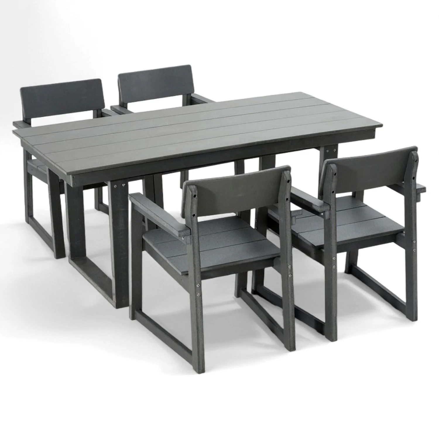 • Premium HDPE MaterialMade of high-density polyethylene, this dining set is waterproof, UV-resistant, and fade-proof, ensuring long-lasting outdoor durability.