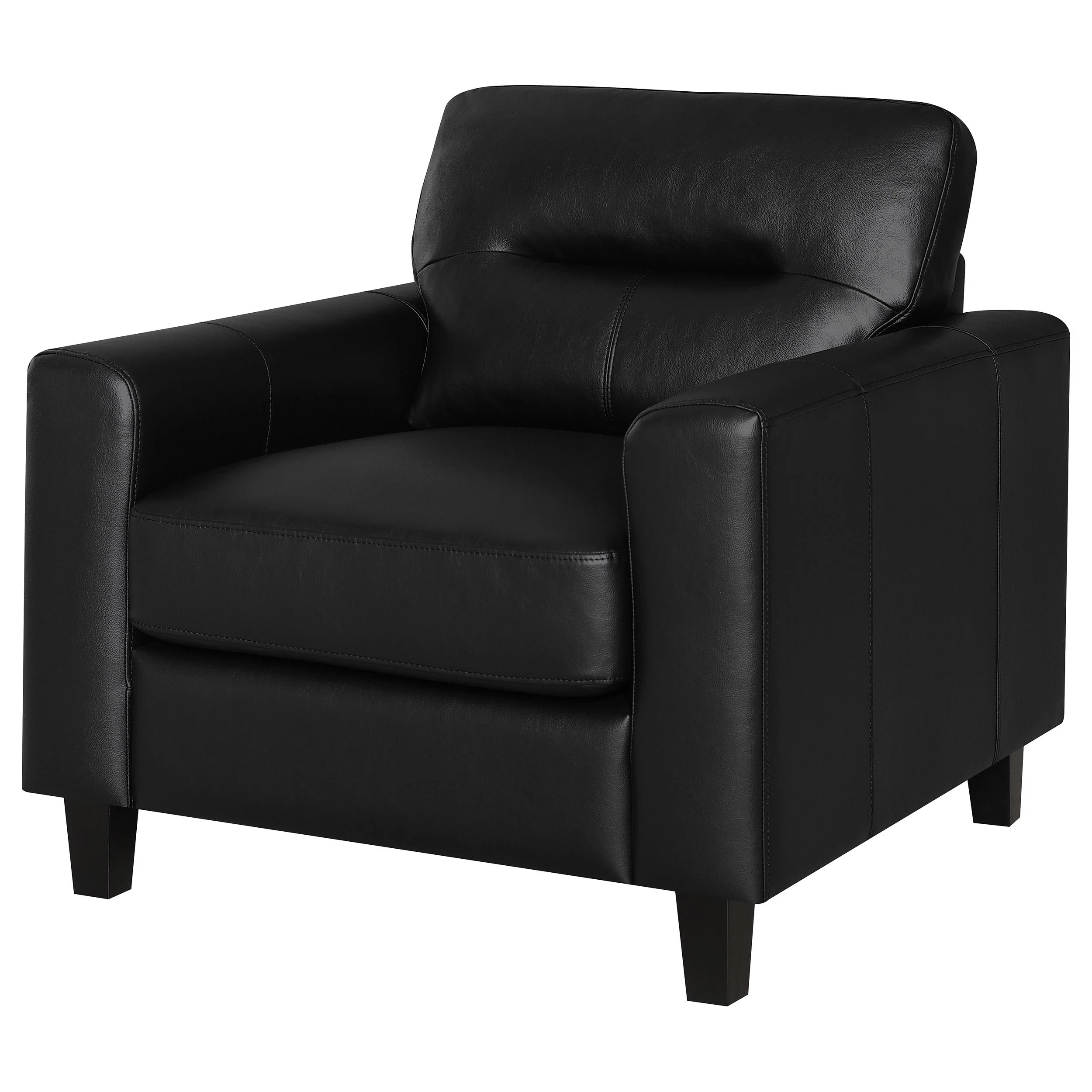 This lounge chair brings focused simplicity to the living room with strong lines and soft detail. Wide track arms wrap around the seat's plush center, where smooth upholstery flows across each surface with quiet ease. Subtle tailoring enhances its sculpted calm.